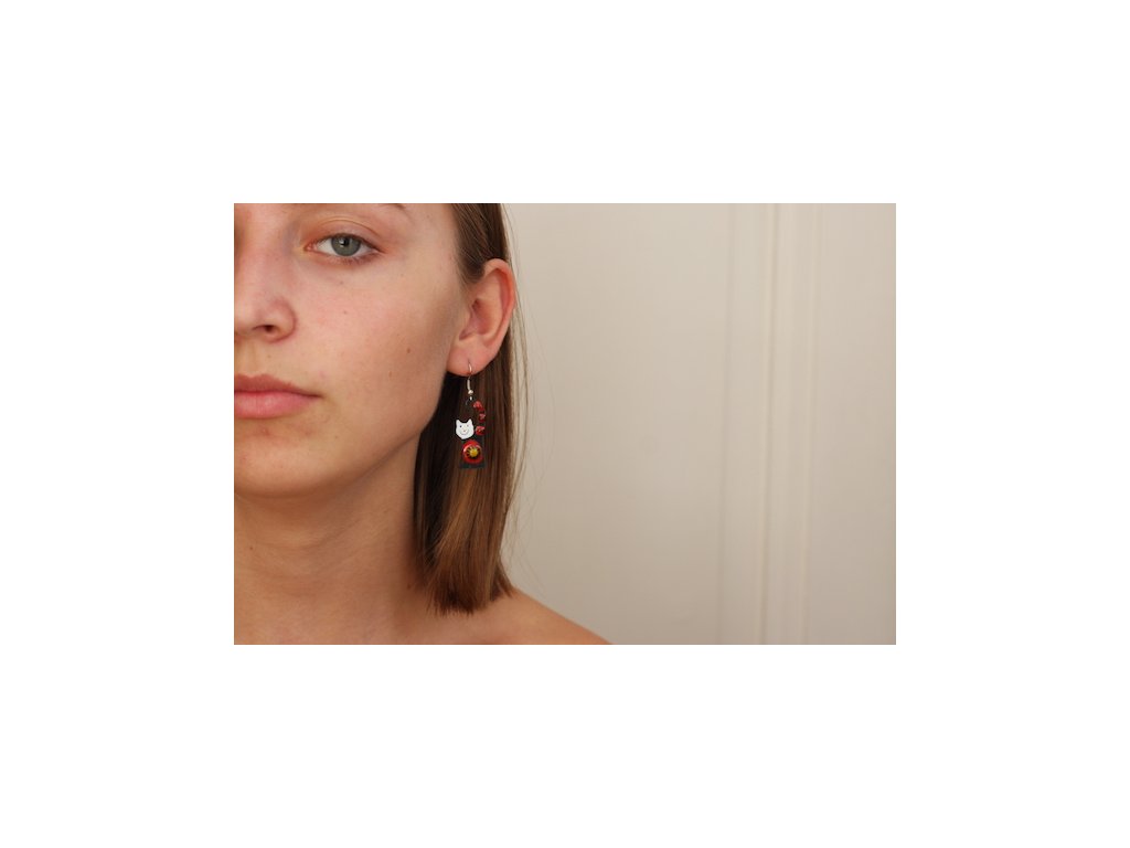 Enamel earrings motive Cat
