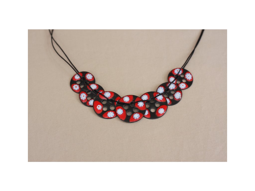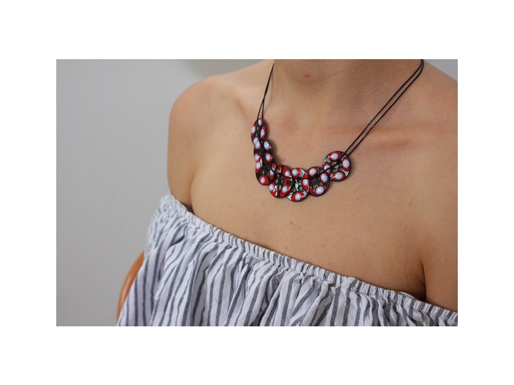 Handmade enamel button necklace on a leather string is a perfect addition to your statement necklace collections.