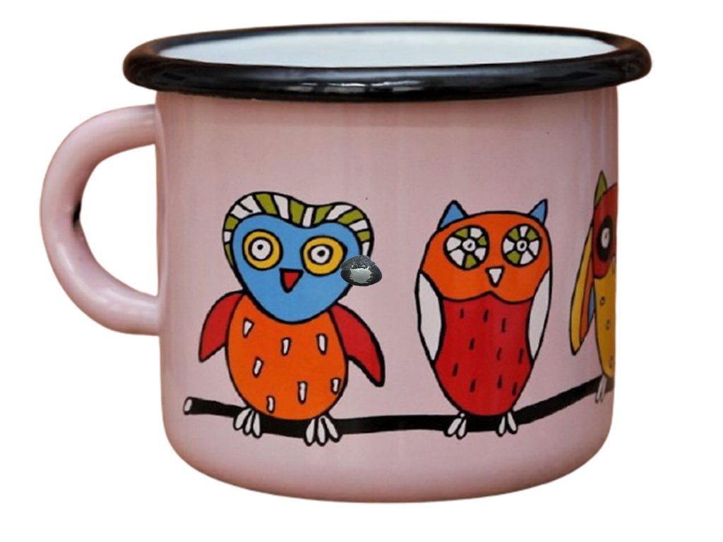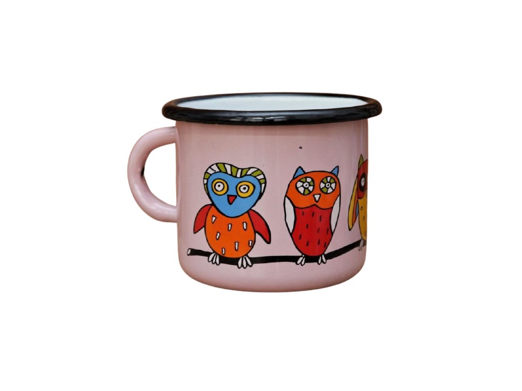 Enamel mug pink motive owl