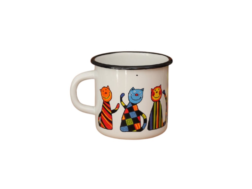 Enamel mugs are made of enameled steel, which is durable, easy to clean, and perfect for everyday use as well as a decoration (flower pot, vase,